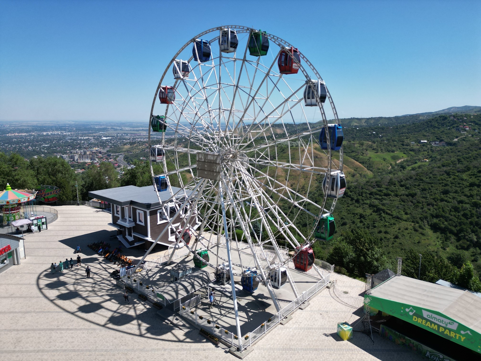 Колесо обозрения на Кок-Тобе - идеальный способ насладиться городом и горами одновременно. Поднявшись на высоту, вы сможете увидеть мегаполис и природу вокруг под совершенно новым углом